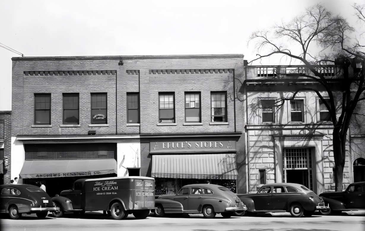 By the mid-twentieth century, Andrews-Henninger Company occupied 133 East Franklin. Contemporary ads list the address and show a department-store mix of clothing and household goods that made it a downtown staple for students and town residents.
